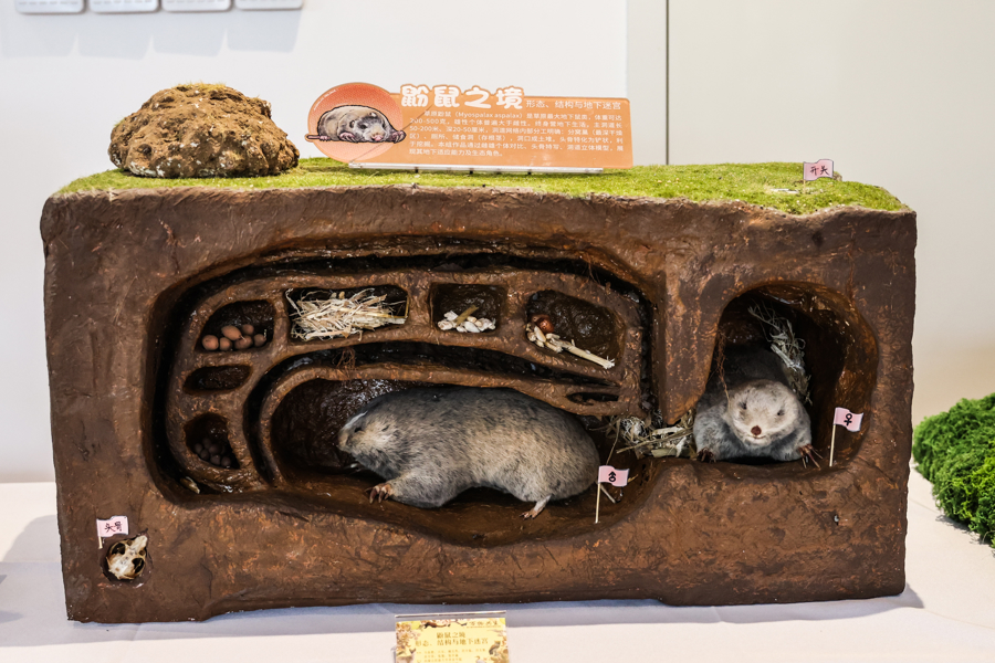 图为现场站催的“鼢鼠之境形态、结构与地下迷宫”标本作品。