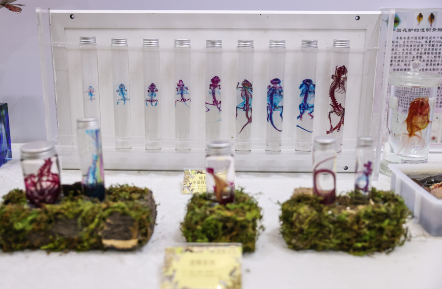 图为现场展出的参赛作品展示了小鼠骨骼发育全过程。