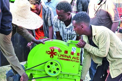 2025年11月26日,在埃塞俄比亚奥罗米亚州的戈迪诺村,当地村民搬运中国捐赠的农业设备。新华社记者 刘方强摄